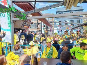L’afició ja gaudeix pels carrers anglesos en les hores prèvies al partit. La ‘marea groga’ col·lapsa els bars i llocs més pròxims a Anfield.