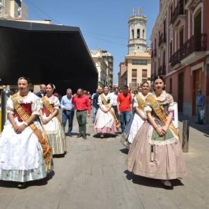El President de la Comissió de Penyes, David García, ha sigut l’encarregat de llegir el Pregó d’Obertura de la festa, el tradicional text de Batiste Carceller Ferrer. Des d’ací la comitiva formada per reina, dames i autoritats municipals s’ha desplaçat cap al jardí de Jaume I, on s’ha succeït un volteig de campanes i una espectacular descàrrega de coets i a les 13.30 ha tingut lloca la inauguració del Recinte de la Marxa a l’avinguda d’Europa