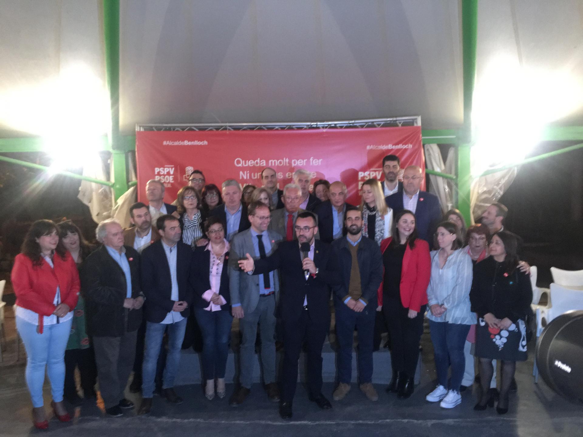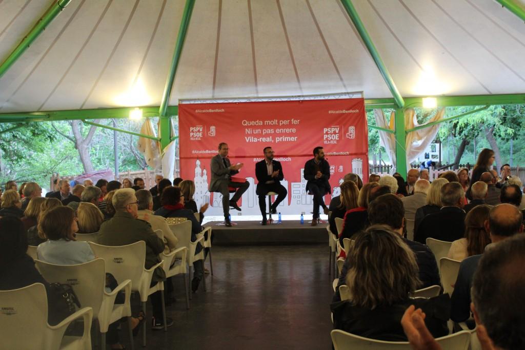 El PSPV-PSOE de Vila-real ha presentat aquesta vesprada la candidatura que acompanyarà l’alcalde i candidat socialista, José Benlloch, en la campanya per a revalidar el govern municipal i ho ha fet en un enclavament d’excepció, el paratge de la Mare de Déu de Gràcia, en la carpa exterior del restaurant i centre de convencions El Molí, ha comptat també amb la participació del secretari d’Organització del PSPV-PSOE, José Muñoz, i del secretari general del PSPV-PSOE de Castelló, Ernest Blanch. L’acte ha causat una gran expectació amb centenars d’assistents i ha estat conduït per la periodista vila-realenca Eli Trilles.