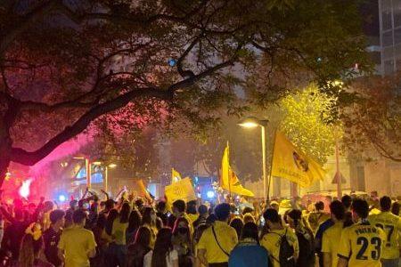 La bogeria s’ha deslligat al caient de les 00.00 de la nit. La victòria ha arribat després d’un torn de penals que ha acabat amb un espectacular 11-10. La consecució del primer títol groc ha generat la ‘il·lusió de tot un poble’, però ha acabat tan sols una hora del confinament nocturn. Per això els llocs habituals de celebració dels groguets s’han abarrotat, però la Policia els ha dispersats ràpidament. De ben segur que la festa es trasllada ara als domicilis.