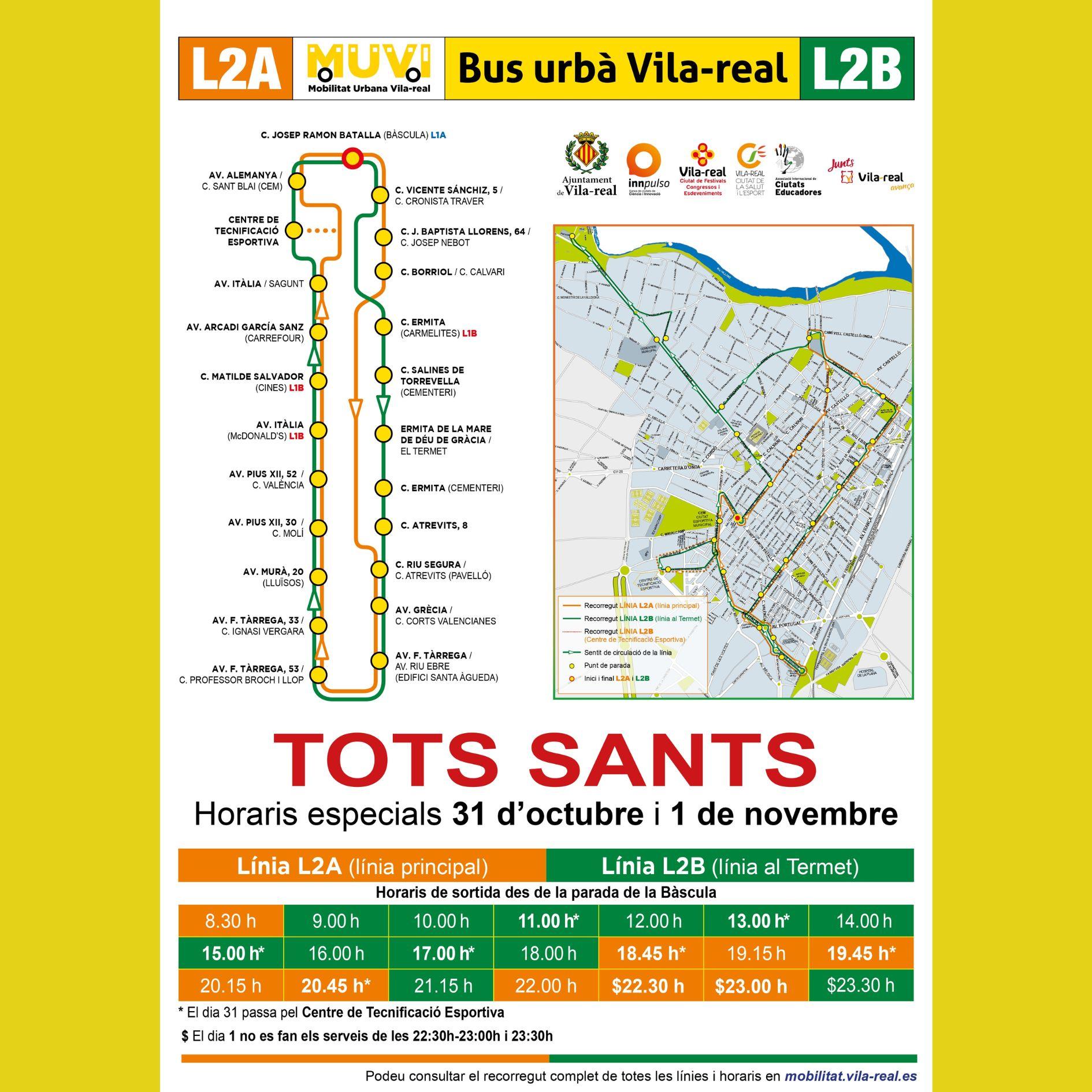 Consulta el recorregut i els horaris d'aquest servei per al 31 d'octubre i l'1 de novembre