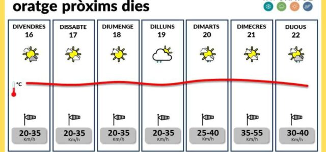 El divendres 16 encara podria deixar algun xàfec dispers a l’interior de Castelló durant la vesprada, però a partir de dissabte, el cel es mantindrà clar i amb escassa presència de núvols, donant pas a unes jornades molt agradables. El vent bufarà moderat, amb ràfegues que podrien arribar als 30 o 35 km/h, però no s’esperen condicions que puguen interferir en el bon desenvolupament dels actes.