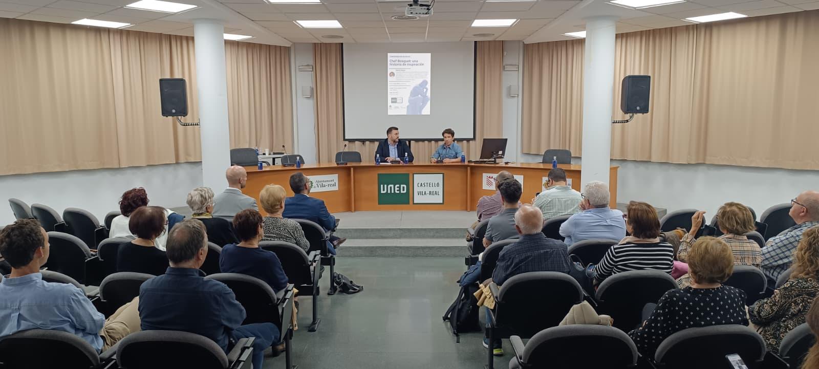 Aquesta vesprada, les Conferències Blanques de la UNED de Vila-real han acollit la ponència ‘Chef Bosquet: Una història d’inspiració’, on el conegut cuiner ha compartit amb els assistents la seua trajectòria professional i personal, marcada per la reinvenció i la passió per la cuina.