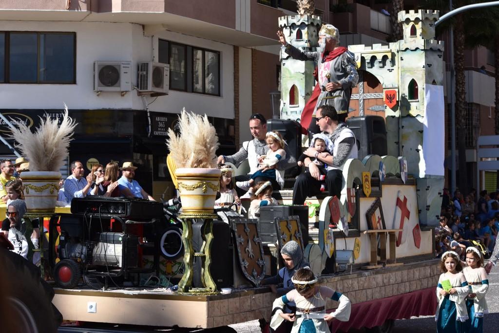 Després de tota aquesta desfilada de ball, música i crítica, i per a posar el fermall d’or, ha passat en primer lloc la carrossa de la reina i dames de 2018 i seguint-la de prop, la de les representants d’enguany, molt animades i vivint un dels moments més esperats.