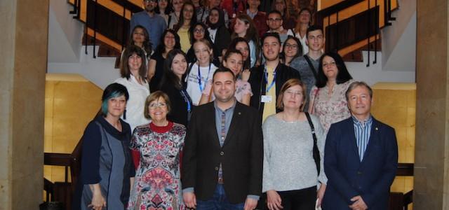 El primer tinent d’alcalde, Xavier Ochando, juntament amb el regidor d’Educació, Eduardo Pérez, i la regidora responsable del projecte de Ciutat Educadora, Rosario Royo, han rebut avui 18 alumnes i 10 professors provinents de Turquia, Romania, Itàlia i Macedònia, que es troben participant al projecte ‘Erasmus+ KA 2 Think critically, act wisely’ juntament amb l’IES Broch i Llop. El grup visita Vila-real i altres municipis per tal de conéixer els principals aspectes culturals i educatius.