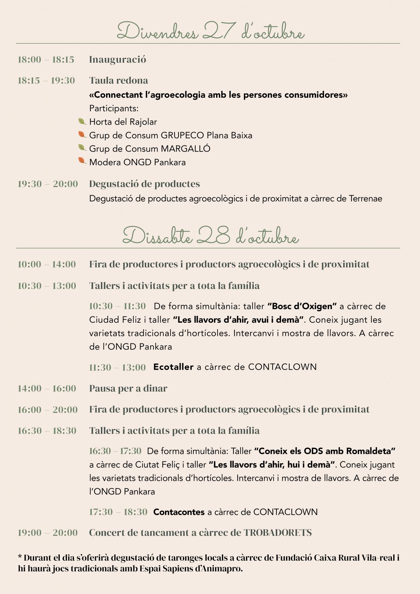 El regidor d’Agricultura, Emilio M. Obiol, ha participat en l’obertura de la fira, juntament amb altres regidors i regidores de la corporació municipal. Un total de 18 organitzacions ompliran la plaça Major amb degustacions de productes, taules rodones, intercanvi i mostra de llavors locals, tallers i activitats per a tota la família, contacontes, música i, per descomptat, parades de productores i productors agroecològics i de proximitat.