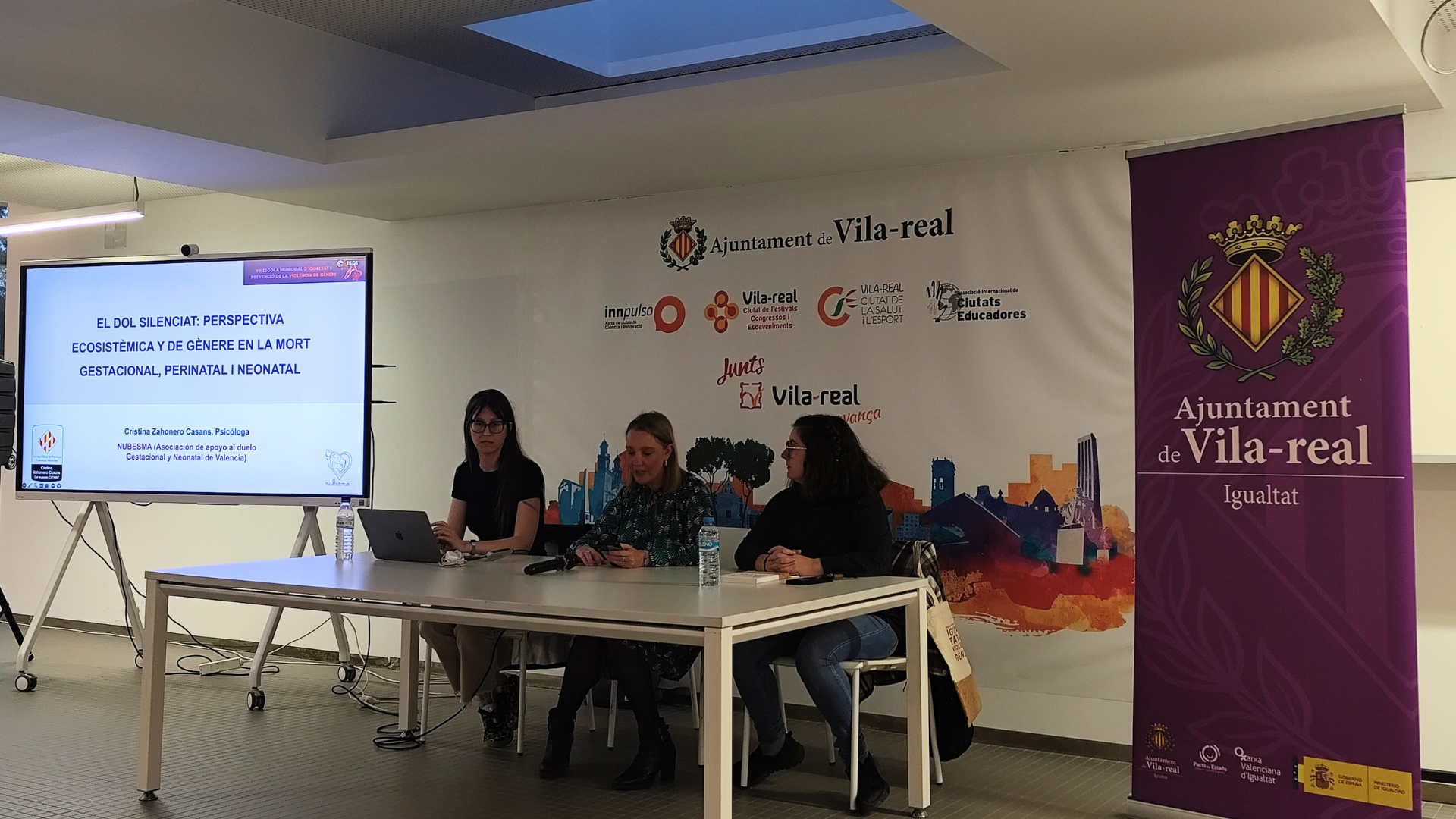 La sessió inaugural ha comptat amb la ponència titulada ‘El dol silenciat: perspectiva ecosistèmica i de gènere en la pèrdua gestacional, perinatal i neonatal’, impartida per Cristina Zahonero i Laia Vilanova, membres de Nubesma, Associació de Suport al Dol Gestacional i Neonatal de València. Les expertes han abordat la necessitat de donar visibilitat a un tipus de dol sovint oblidat i de posar-lo en context des d’una mirada feminista i comunitària.
