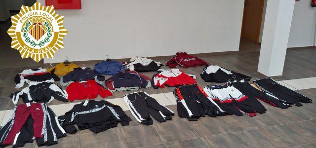 La Policia Local de Vila-real, a través de la Unitat de Consum i Establiments (UCECO), ha intervingut aquest matí un total de 73 peces de roba de marques falsificades en un dels llocs de venda del mercat ambulant de la ciutat. Per aquest motiu, els agents han obert diligències judicials contra el venedor, per un presumpte delicte contra la propietat industrial.