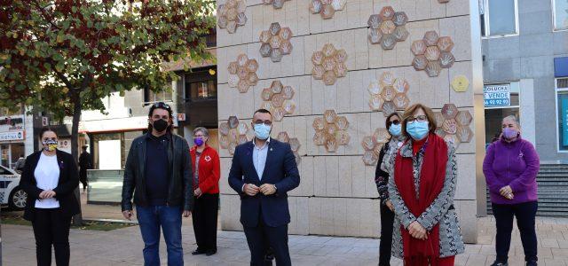 L’alcalde i el ceramista Angel Igual inauguren el mural ‘La Comunitat’, situat a la plaça Major, en commemoració del 25N