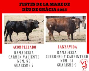 Per altra banda, la Comissió de Penyes de Vila-real també ha donat a conèixer quins son els dos bous que han adquirit per a les festes locals. Es tracta de ‘Acomplejado’, de la ramaderia Carmen Valiente i ‘Lanzavida’, de la ramaderia Guerrero i Carpintero.