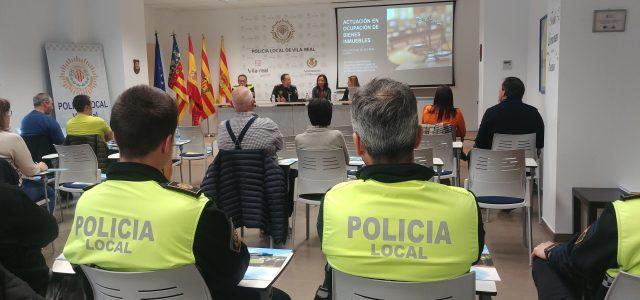 La Policia Local de Vila-real ha impartit aquesta setmana un curs dirigit a formar als agents en l’actuació policial davant l’ocupació d’immobles. El seminari forma part de l’aposta del cos municipal de seguretat per la formació contínua per a la prestació d’un millor servei i s’ha impartit a la sala de l’Escola de Formació de la Policia Local, Efopol, amb una duració de tres hores.