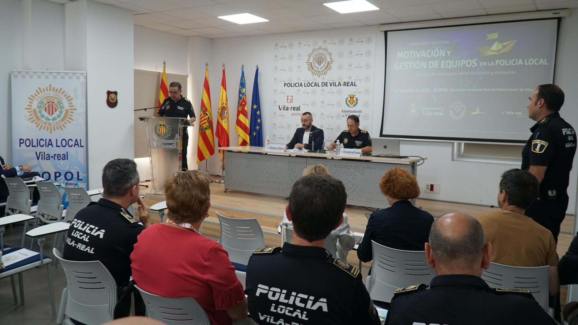 L’alcalde de Vila-real, José Benlloch, i el comissari principal cap de la Policia Local, José Ramón Nieto, han inaugurat aquest matí el I Seminari nacional de motivació i gestió d’equips en la Policia Local impartit per l’Escola de Formació Policial de la Policia Local de Vila-real (Efopol). El seminari, dirigit a caps i responsables de la Policia Local, compta amb la participació d’experts en lideratge, gestió d’equips i gestió emocional per a millorar la motivació de les organitzacions policials.