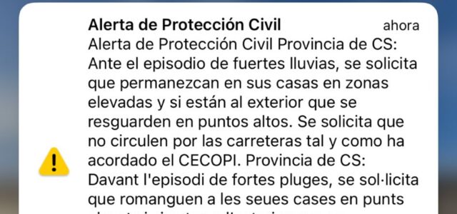 A més, l’Ajuntament prega a la ciutadania que es mantinga informada a través dels canals oficials de la Generalitat, d’Emergències i del mateix Ajuntament. S’aconsella evitar al màxim els desplaçaments per carretera i les activitats a l’aire lliure, per garantir la seguretat de tots davant les condicions meteorològiques adverses.
