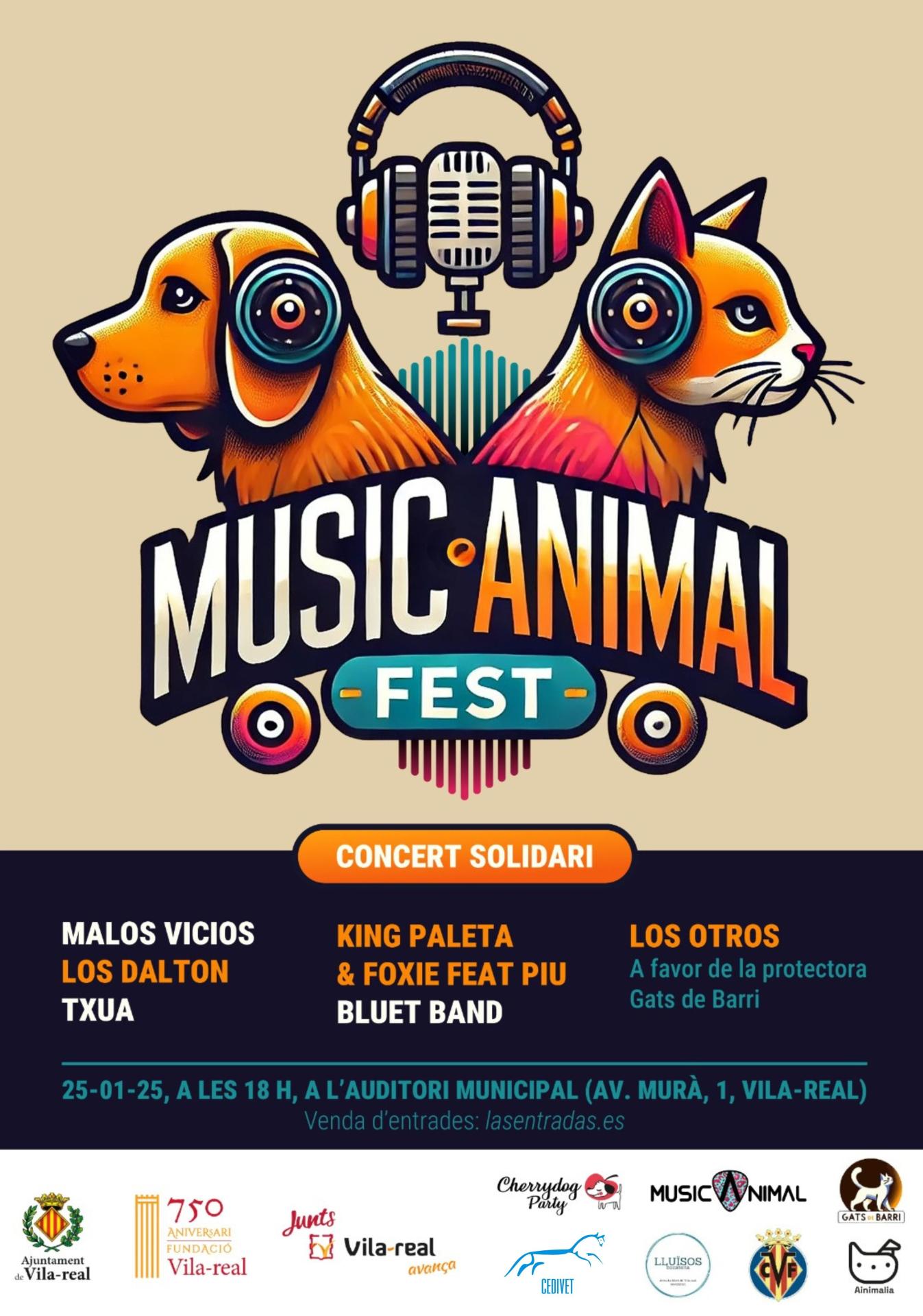 L’Auditori Municipal Músic Rafael Beltrán Moner serà escenari de dues noves propostes culturals amb caràcter solidari que compten amb la col·laboració de la Regidoria de Cultura. Així, este dissabte 25 de gener tindrà lloc el ‘Music Animal Fest’, un esdeveniment musical a benefici de la protectora Gats de Barri. El concert començarà a les 18.00 hores i comptarà amb la participació de reconegudes bandes del panorama local com: Malos Vicios, Los Dalton, Txua, King Paleta & Foxie Feat Piu, Bluet Band i Los otros.