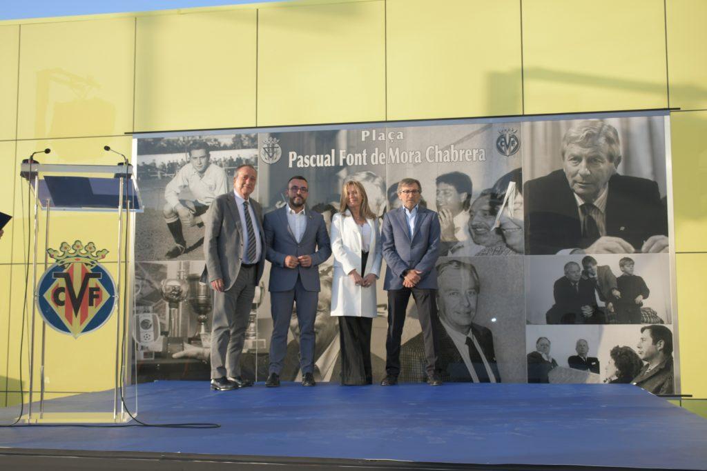 María José Font de Mora va recalcar l’esforç del seu pare: “Estem molt orgullosos d’aqueix granet d’arena que va posar el nostre pare al Villarreal. Un granet d’arena que de la mà de Fernando Roig s’ha convertit en una muntanya. Moltes gràcies per fer real el somni del nostre pare. El Villarreal és un club gran i exemplar. Igualment ens agradaria agrair a tot l’organisme municipal i a l’alcalde aquest reconeixement. Per a nosaltres és molt important tindre aquesta plaça amb el seu nom tan prop del seu camp, tan prop del seu cor”.