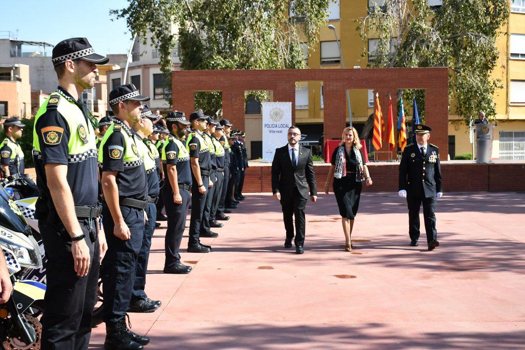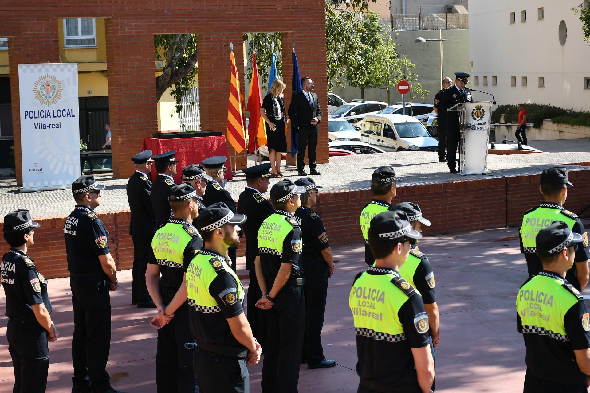 L’agent Tàfol Barberà i el comissari principal cap, José Ramón Nieto, han intervingut en l’inici de l’acte i han posat en valor el treball realitzat per a garantir la seguretat, ha recordat als companys jubilats i l’esforç “que s’està fent per a la reposició dels llocs” i al minvament d’agents en la plantilla policial a causa de les jubilacions anticipades després de l’entrada en vigor de la nova Llei de Coordinació de Policies Locals, el que ha provocat les rialles dels manifestants. Durant l’acte s’han lliurat diverses condecoracions i plaques com a l’agent jubilat més major, Francisco Martín Galán, a Lucía Bachero Sánchez, fiscal Coordinadora de delictes contra la seguritat vial. També a la Intervenció d’armes de la Guàrdia Civil de Borriana, i ha recollit la condecoració, José Jesús Orzaez, interventor d’armes; i a companys destacats com l’agent de Vila-real, Jesus Izquierdo Zafón, pel seu treball en la sala 092, a Fernando Rodríguez Lozano, del servei d’Atestats, a Manuel Juan Fortea Nebot, de la Unitat d’Objectes Perduts, María Lucía Ranilla Verdés, de la Unitat Administrativa i a Domingo Adán, per la seua tasca com a comissari de setembre de 2018 a 2019.