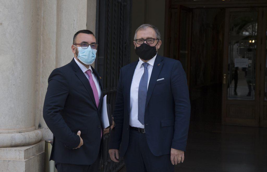 El president de la Diputació de Castelló, José Martí, i l’alcalde de Vila-real, José Benlloch, s’han reunit hui al Palau de les Aules per a tractar diversos assumptes que afecten la localitat i guarden relació amb la institució provincial. També s’ha abordat la posada en marxa del Pla Reactivem Castelló que impulsa la Diputació per a la reconstrucció de la província i el repte que representa per a les administracions públiques l’accés als fons de la Unió Europea que arribaran a Espanya per a posar en marxa el Pla de Recuperació, Transformació i Resiliència de l’Economia.