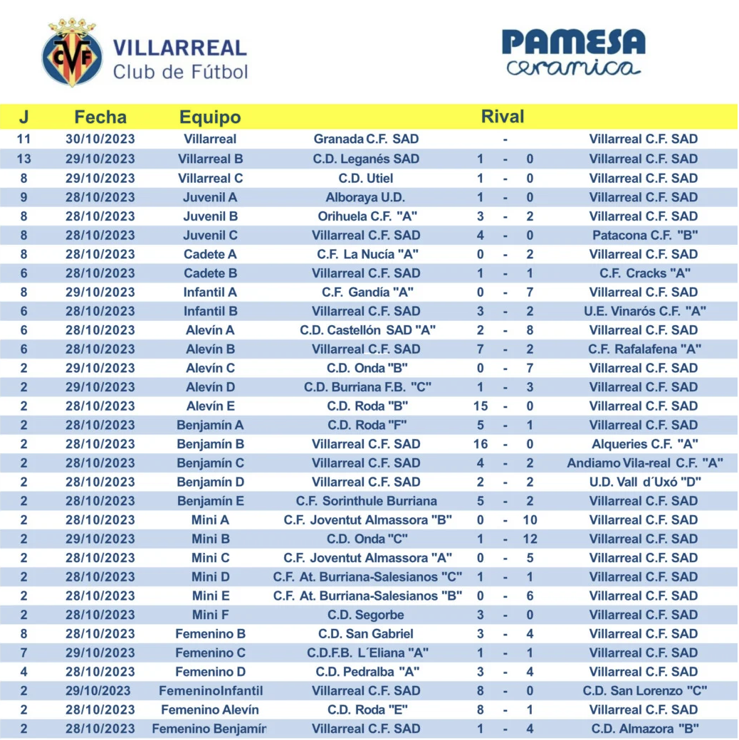 Fins a 17 equips del Villarreal CF han aconseguit la victòria este cap de setmana