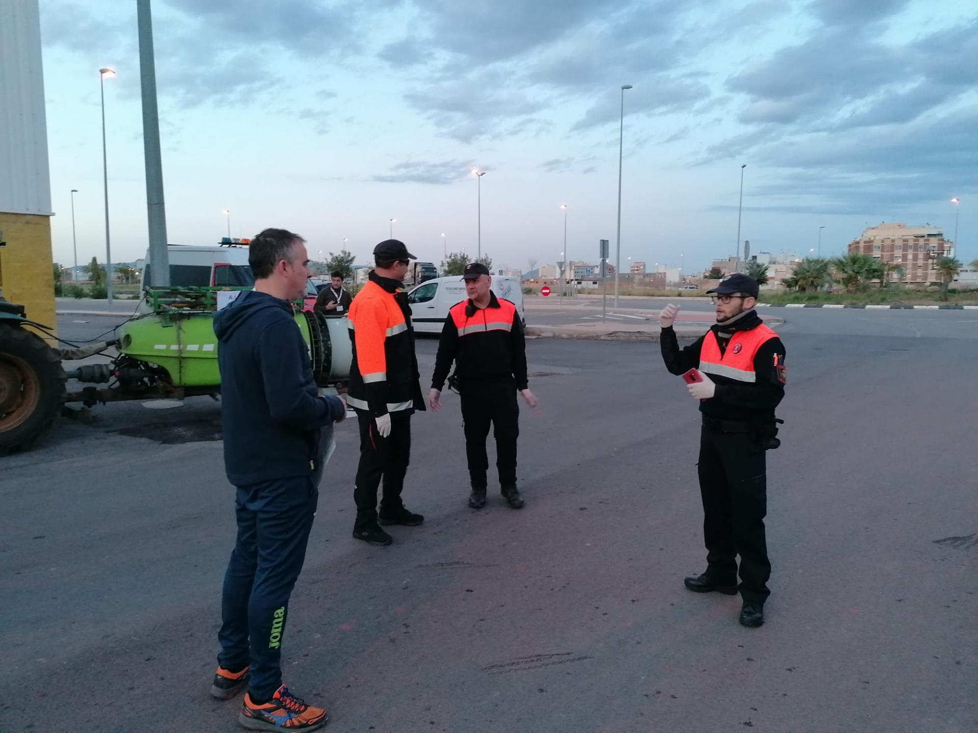 L’edil ha volgut expressar el seu agraïment a les empreses que estan col·laborant, Stoplagas, Cubas Setel S.L. i Protecció Civil i els agricultors que s’han inscrit a la llista de voluntaris de l’Ajuntament, els que participen aquest cap de setmana, i als que participaran les pròximes setmanes, per la tasca realitzada i ha fet un prec a la gent que ix a finestres i balcons al seu pas. “Encara que la solució que s’usa per a desinfectar no és perjudicial i està molt diluïda, els demanem que quan passen els turbos tanquen les finestres per a evitar qualsevol mal”, ha afirmat i ha expressat el seu desig que amb les noves ordres del Govern les zones de pas menys ocupades i ji haja menys tràfic de persones”,
