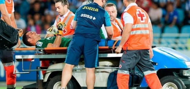 El porter murcià es va veure obligat a retirar-se ahir en el descans del partit contra la Reial Societat després de lesionar-se en el minut 44 de partit en l’acció que va suposar el tercer gol de l’equip d’Eusebio Sagristà en la derrota per 3-0 dels grocs.