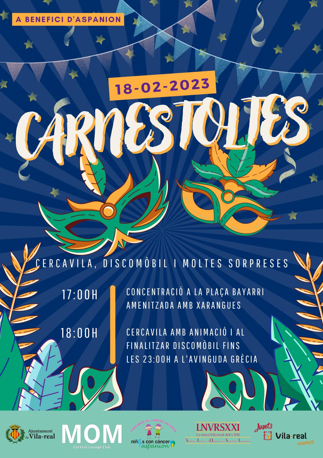 Vila-real recupera la festa del Carnestoltes després de dos anys de suspensió per la pandèmia. Una celebració que tornarà a incloure l’habitual cercavila de disfresses i una discomòbil, a més d’iniciatives solidàries per a col·laborar amb l’associació d’ajuda als xiquets amb càncer Aspanion-Pintando el camino en rosa. Així, l’Ajuntament de Vila-real, en diàleg amb la Comissió de Penyes, que enguany no ha pogut organitzar la festa del Carnestoltes, ha programat diferents activitats per a la vesprada-nit del dissabte 18 de febrer.