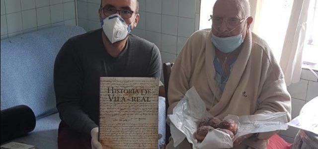 L’alcalde José Benlloch ha fet lliurament d’un lot de llibres a Trinitario Cueva, el veí de la localitat de 93 anys que ha aconseguit superar el coronavirus en un gest per a “reconéixer la seua fortalesa i valentia” davant la malaltia i agrair que “públicament haja eixit a donar ànims a la ciutadania. Trinitario és un exemple de lluita i superació i li he volgut transmetre el meu agraïment perquè ell representa els valors i fortalesa dels nostres majors, als qui devem tant”. L’alcalde li ha entregat el llibre sobre la història de Vila-real i també la publicació de mossén Vicent Gimeno sobre Sant Pasqual, entre altres, a més de cordonets de Sant Pasqual, una làmina de la Mare de Déu de Gràcia i unes tradicionals pilotes de frare.