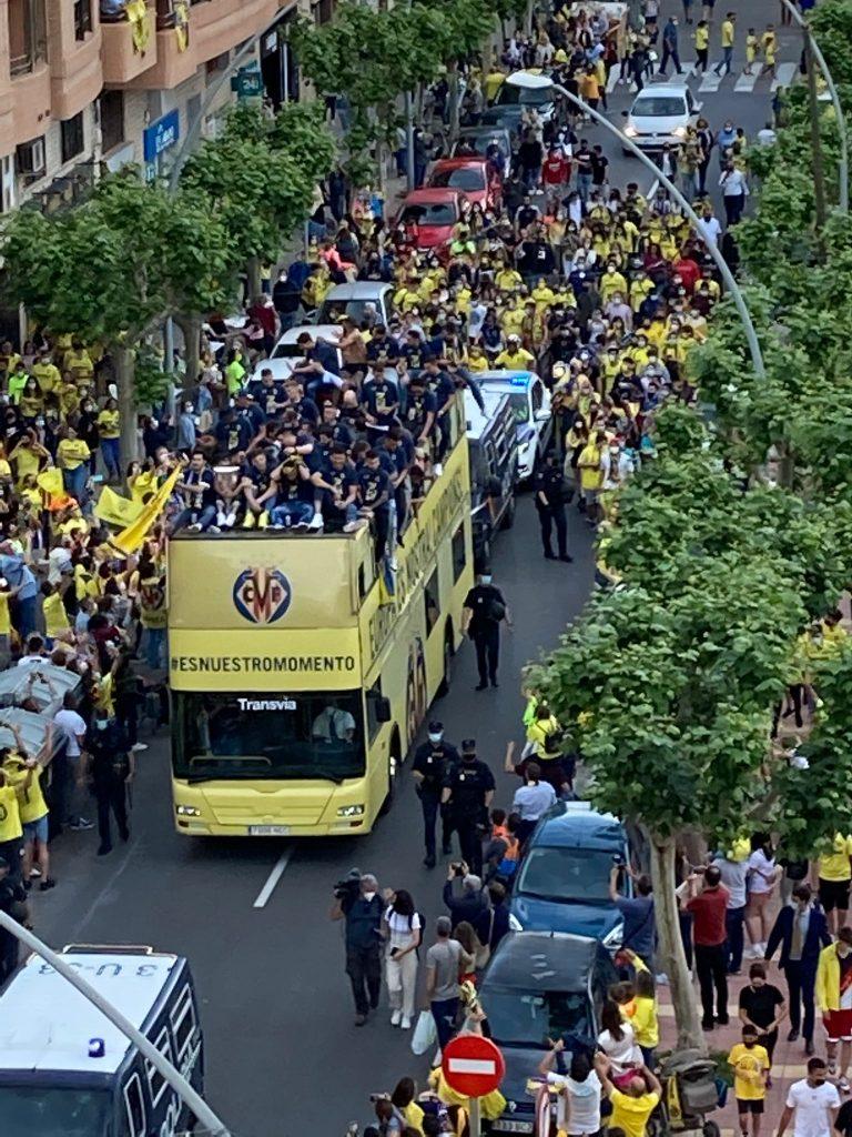 L’autobús que transportava als futbolistes no ha realitzat cap parada a conseqüència de les exigències del protocol anticovid-19. El final del recorregut ha tingut lloc en el temple groc, en l’Estadi de la Ceràmica, on tindrà lloc un sopar de celebració amb la presència de jugadors, tècnics, directius, patrocinadors i familiars dels jugadors.