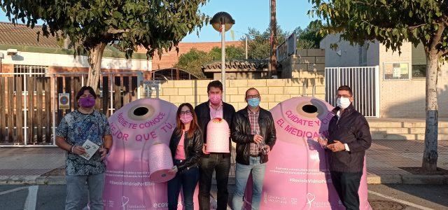 Vila-real se suma al Dia Internacional contra el càncer de mama a través d’una nova campanya d’Ecovidrio i l’AECC. El regidor de Serveis Públics, Xus Madrigal, i el regidor d’Agricultura, Sostenibilitat, Transició Ecològica, Energètica i Medi Ambient, José Ramón Ventura Chalmeta, han acompanyat els representants d’Ecovidrio i AECC en el llançament a Vila-real de la campanya ‘Recicla vidrio por ellas’, que ha col·locat dos contenidors rosa -el color de la lluita contra el càncer de mama- tipus iglú per al reciclatge de vidre en l’Avinguda Europa, 3 .