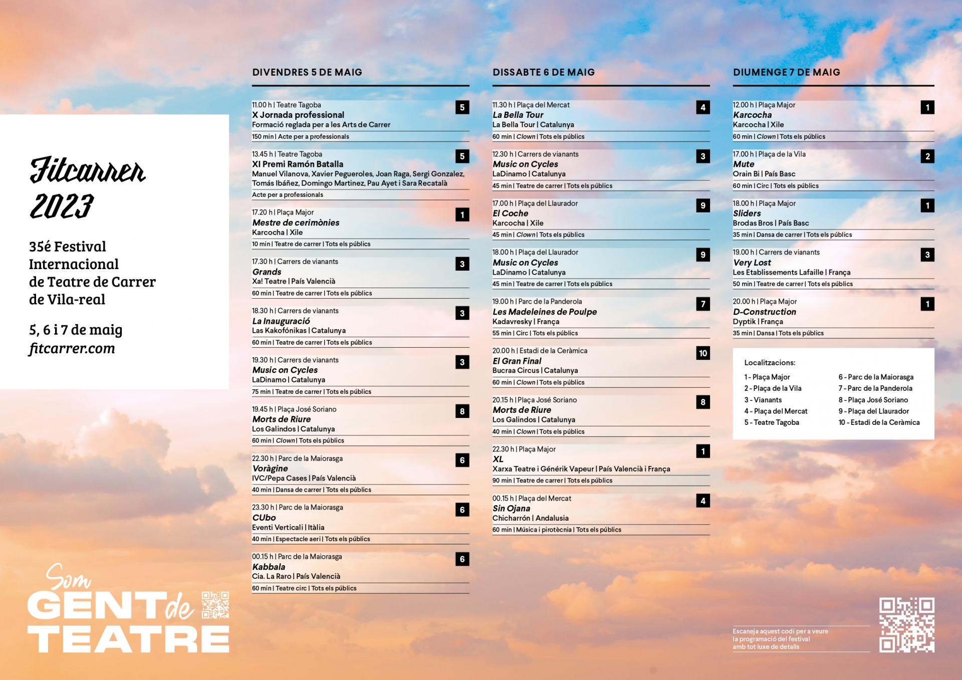 Sara Recatalà ha explicat que el festival comptarà amb una programació molt variada, en la qual es podrà gaudir de teatre, dansa, circ, treball de màscara, arlequins, etc. “Tindrem una edició més internacional que mai, sense oblidar a les companyies locals i de la nostra terra”, remarca la directora. Així, el FITCarrer comptarà amb la participació de 19 companyies, de les quals 12 seran de l’àmbit nacional i 7 de diferents països com França, Itàlia, Colòmbia o Xile. La directora del festival ha agraït el suport de l’Ajuntament de Vila-real, a través de la Regidoria d’Innovació Cultural i el departament de Cultura, a més de la resta de patrocinadors i col·laboradors.