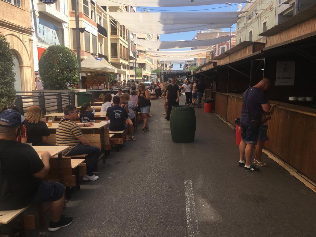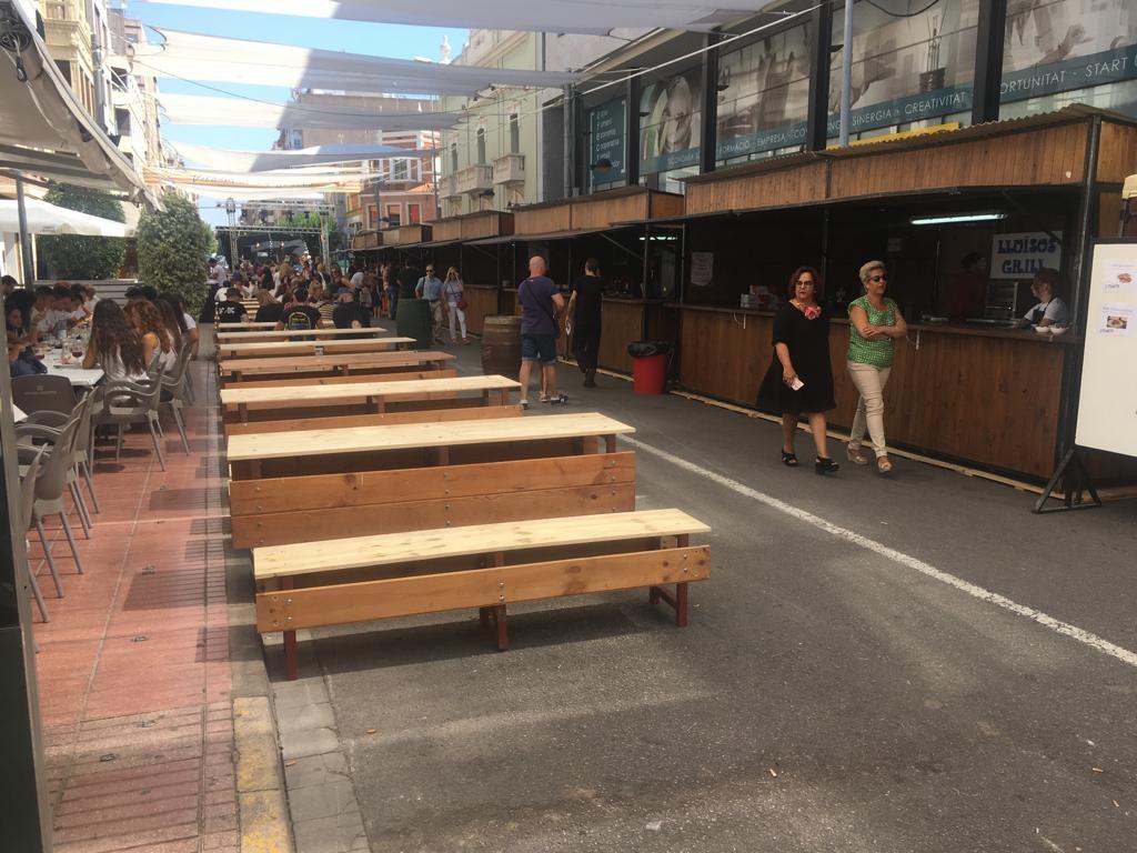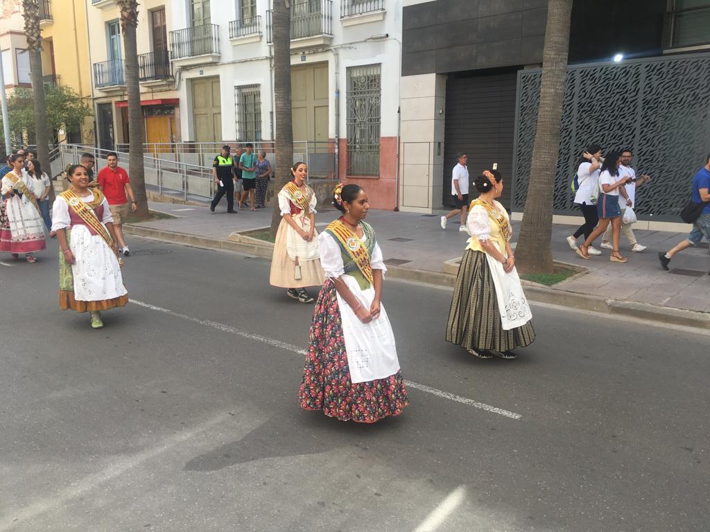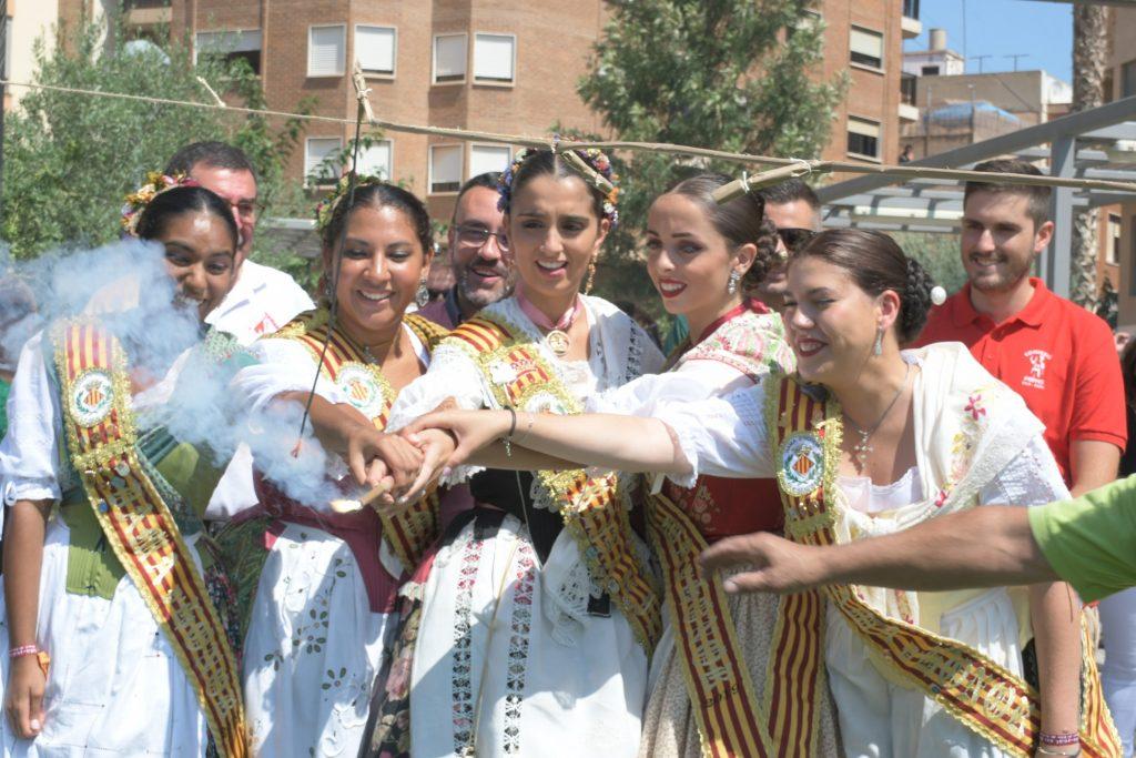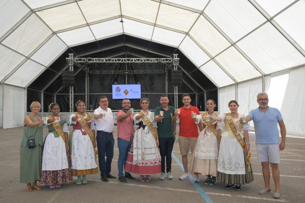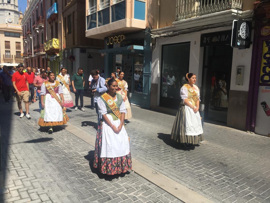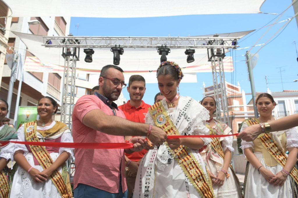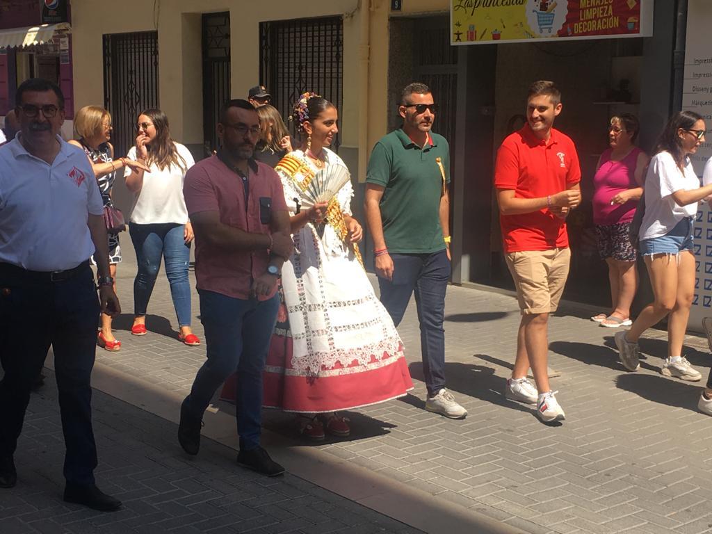 Després de la descàrrega de coets i volteig de campanes al jardí de Jaume I, la comitiva oficial s’ha desplaçat a l’avinguda d’Europa, per a tallar la cinta d’una nova edició del Recinte de la Marxa. Un espai festiu al qual enguany se suma, per primera vegada, la Fira gastronòmica promoguda per la Comissió de Penyes, amb motiu del seu 40é aniversari, amb cinc casetes amb tapes populas i gastronòmiques que estarà situada durant totes les festes en 1.500 metres quadrats de l’avinguda de la Murà. Per arribar al recinte de la nova Fira, que s’ha inaugurat també amb el president de la Comissió de Penyes, David Garcia, la comitiva oficial s’ha desplaçat amb el Groguet, el servei d’autobús urbà gratuït, pioner i únic gratuït de les seues característiques a Espanya. La comitiva oficial ha estat formada també pel regidor de Festes, Diego A. Vila, i el president de la Junta de Festes, José Pascual Colás, a més de regidors i regidores de la corporació municipal, precedits per la música de dolçaina i tabal del Trull.