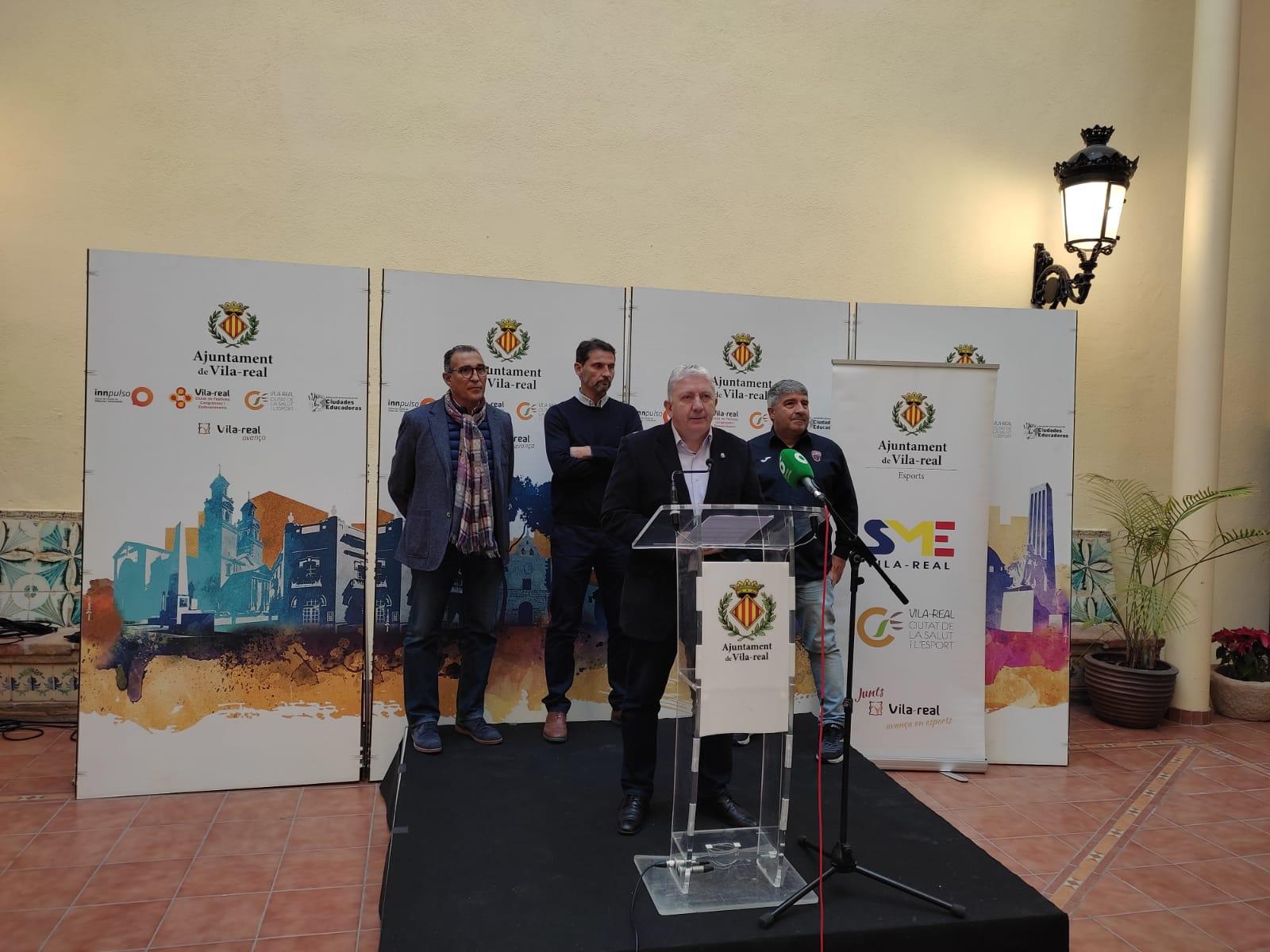L’Ajuntament de Vila-real consolida i amplia la seua marca de Ciutat de la Salut i l’Esport amb el suport a una nova disciplina esportiva que fomenta la integració i inclusió de persones amb diversitat funcional. La primera edició del trofeu Ciutat de Vila-real d’A-ball, futbol adaptat, se celebrarà aquest diumenge, 15 de gener, en la plaça Major de Vila-real, amb la participació de quatre equips i amb el club local VilaSport com a amfitrió. El regidor d’Esports, Javier Serralvo, ha presentat el torneig acompanyat pel president del club VilaSport, Juanan Endrino, el cap de l’àrea d’Esports de la Universitat Politècnica de València i representant de l’Associació per al Foment de l’A-ball a Espanya, César Iribarren, i el president de l’Associació de Futbolistes del Valencia CF, Fernando Giner.