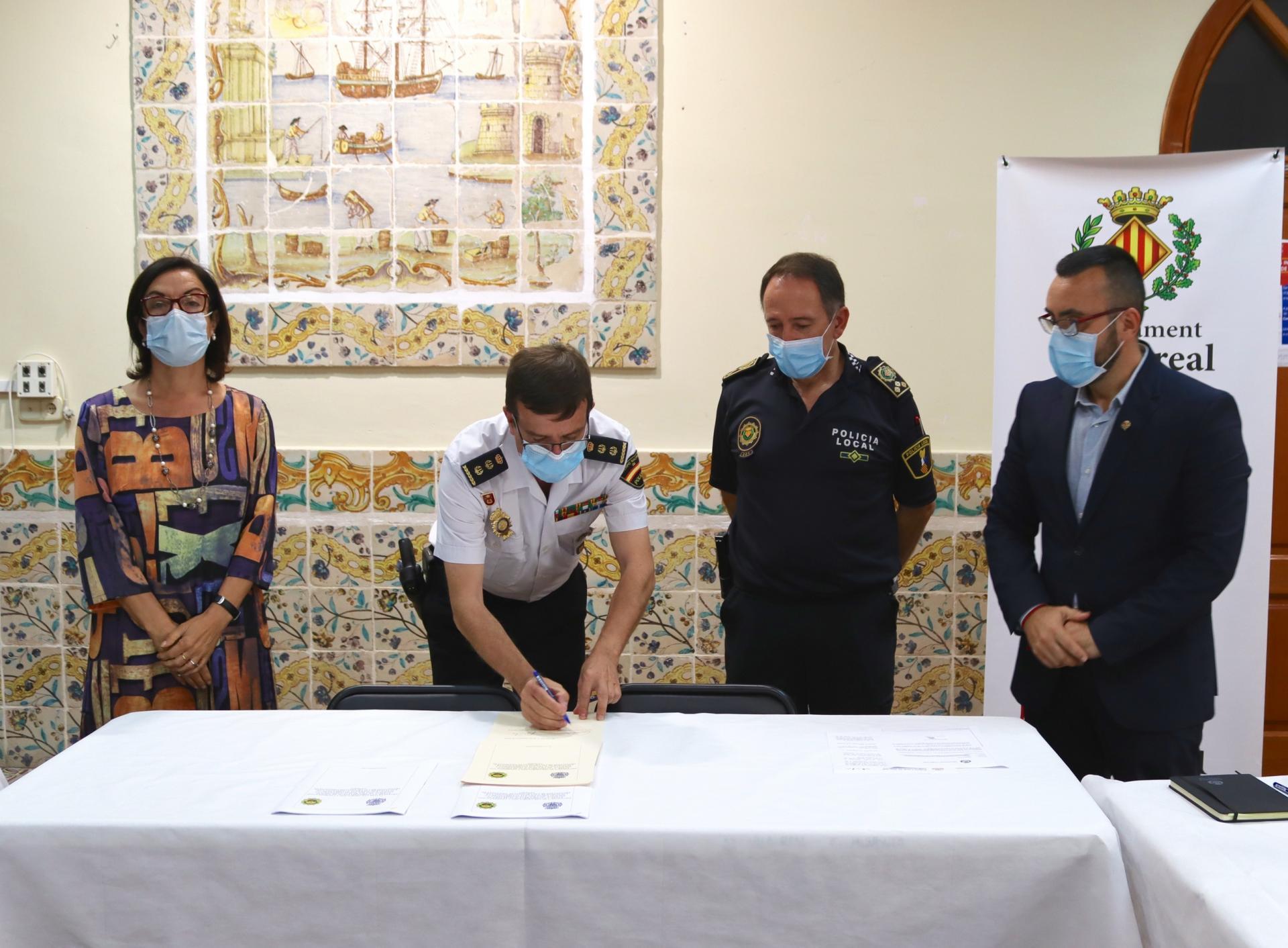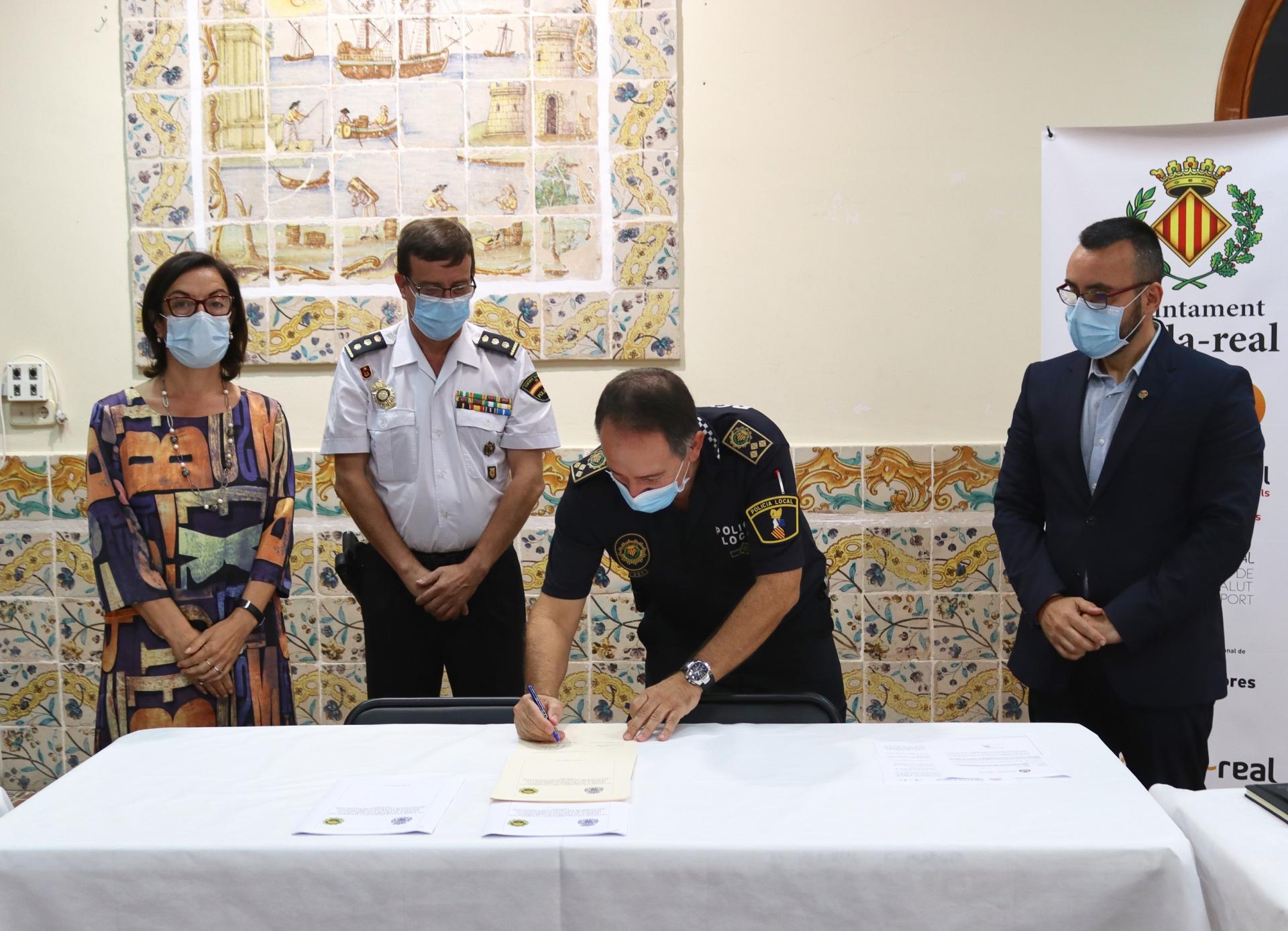 La Policia Local i el Cos Nacional de Policia han renovat el conveni de col·laboració per a la participació de la ciutat en el Sistema de Seguiment Integral dels Casos de Violència de Gènere (Viogen). L’acord, rubricat en el marc d’una Junta de Seguretat Local presidida per l’alcalde, José Benlloch, i la subdelegada del Govern, Soledad Ten, suposa la incorporació de dos agents formats específicament al seguiment de víctimes de violència masclista que desenvolupa la Policia Nacional. “Una vegada més, sumem esforços i coordinem recursos per a posar tot de la nostra part en la lluita contra la violència masclista, en una col·laboració entre ambdós cossos de seguretat que és exemplar i ens ajuda a ser més eficaços en la salvaguarda de la seguretat de la ciutadania. Aquesta col·laboració és especialment important en un tema tan dramàtic com és la violència masclista, en el qual no caben matisos ni mitges tintes”, valora l’alcalde. En la signatura de l’acord han participat també el comissari principal de la Policia Local, José Ramón Nieto, i el comissari en cap provincial de la Policia Nacional, Emilio Romero (qui ha signat el conveni), a més del cap de la comissaria de Policia Nacional, Carlos Calahorra.