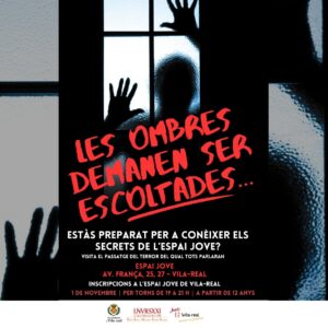 Les ombres prenen vida aquest 1 de novembre a l’Espai Jove de Vila-real. Sota el lema “Les ombres demanen ser escoltades”, el centre juvenil convida els joves més valents a endinsar-se en un passatge del terror únic, ple de misteri, suspens i emocions fortes.
