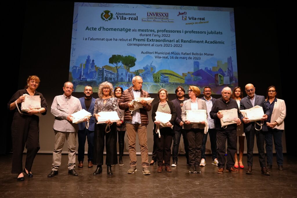 Vila-real ha reconegut hui als alumnes de Primària i Secundària de la ciutat que han rebut el Premi Extraordinari al Rendiment Acadèmic del curs 2021-22 així com als docents que s’han jubilat en 2022. L’acte ha comptat amb la participació de l’alcalde, José Benlloch, i regidors i regidores de la corporació municipal. En total han sigut 36 alumnes els qui han rebut el reconeixement per part de l’Ajuntament pel seu talent i esforç. Així mateix, s’ha lliurat un agraïment per la seua dedicació a una quinzena de docents jubilats en l’últim any.