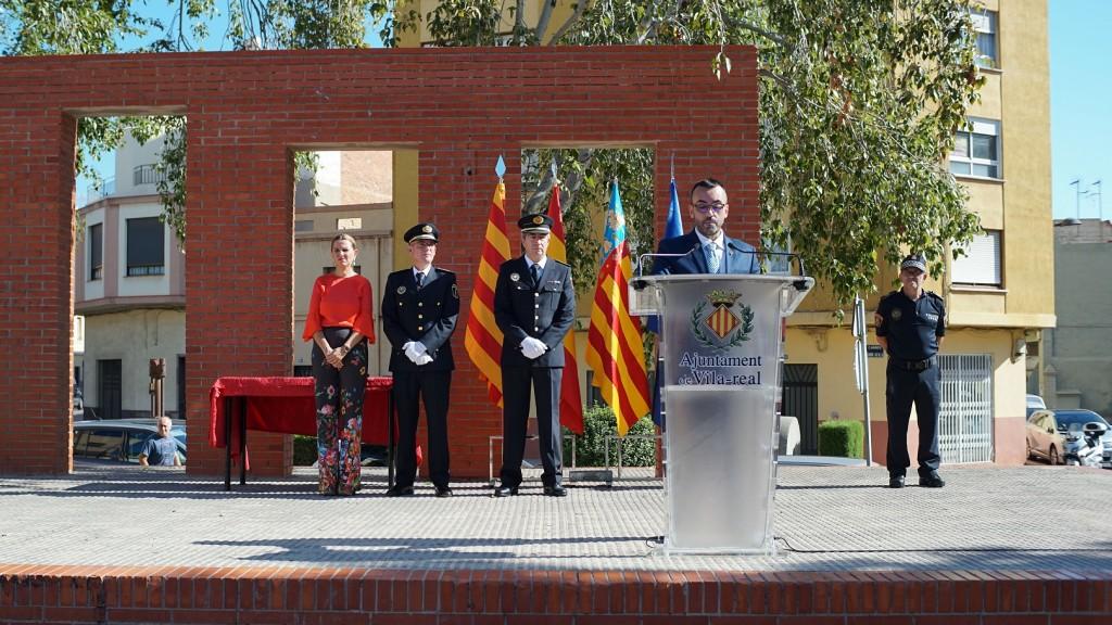 La Policia Local de Vila-real ha celebrat aquest matí la festa del seu patró, Sant Miquel, amb el tradicional acte de formació i passada de revista per part de l’alcalde, José Benlloch, la regidora de Seguretat Ciutadana, Silvia Gómez, i el comissari cap de la Policia, Domingo Adán. “L’Ajuntament i la ciutat de Vila-real estem orgullosos del nostre cos municipal de seguretat i d’aquesta ‘altra forma de fer policia’ que porten cada dia a peu de carrer i també arreu del món. Una altra forma de fer policia dialogant, pròxima, formada i formadora en valors de convivència que impregna el treball dels 104 agents, oficials i comandaments que conformen les 21 unitats i serveis que integren el cos municipal”, ha destacat l’alcalde en el seu discurs.