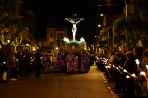 Ahir per la nit els vens de la localitat van acompanyar a Jesucrist en la Processó del Silenci, organitzada per la Confraria del Santíssim Crist de l’Hospital, i la qual va comptar amb la participació de l’alcalde, José Benlloch, representants de la corporació i de la Junta Central de Setmana Santa.