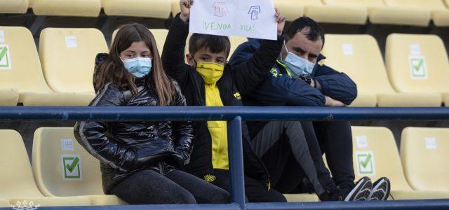 El xiquet va portar una pancarta per l’atacant canari a l’encontre davant el CE Sabadell